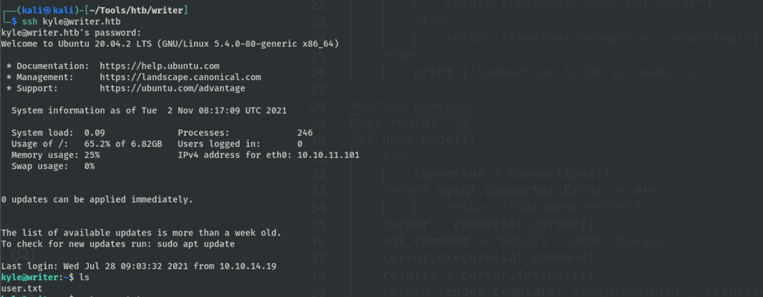 @app.route('/dashboard/stories/edit/<id>', methods=['GET', 'POST']) def edit_story(id): if not ('user' in session): return redirect('/') try: connector = connections() except mysql.connector.Error as err: return ("Database error") if request.method == "POST": cursor = connector.cursor() cursor.execute("SELECT * FROM stories where id = %(id)s;", {'id': id}) results = cursor.fetchall() if request.files['image']: image = request.files['image'] if ".jpg" in image.filename: path = os.path.join('/var/www/writer.htb/writer/static/img/', image.filename) image.save(path) image = "/img/{}".format(image.filename) cursor = connector.cursor() cursor.execute("UPDATE stories SET image = %(image)s WHERE id = %(id)s", {'image':image, 'id':id}) result = connector.commit() else: error = "File extensions must be in .jpg!" return render_template('edit.html', error=error, results=results, id=id) if request.form.get('image_url'): image_url = request.form.get('image_url') if ".jpg" in image_url: try: local_filename, headers = urllib.request.urlretrieve(image_url) os.system("mv {} {}.jpg".format(local_filename, local_filename)) image = "{}.jpg".format(local_filename) try: im = Image.open(image) im.verify() im.close() image = image.replace('/tmp/','') os.system("mv /tmp/{} /var/www/writer.htb/writer/static/img/{}".format(image, image)) image = "/img/{}".format(image) cursor = connector.cursor() cursor.execute("UPDATE stories SET image = %(image)s WHERE id = %(id)s", {'image':image, 'id':id}) result = connector.commit()