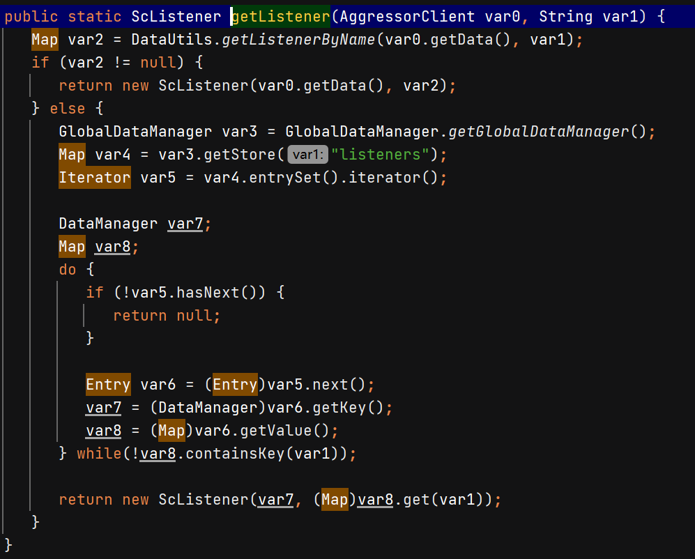 可以通过前面的提示信息SHA256 hash of SSL cert is在代码中搜索,定位到TeamServer启动的位置(server/TeamServer/A)。